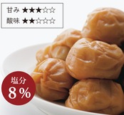 白干し甘仕上げの梅干しは塩分控えめでありながら、梅本来の風味を残して漬け上げています。